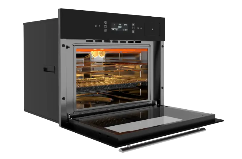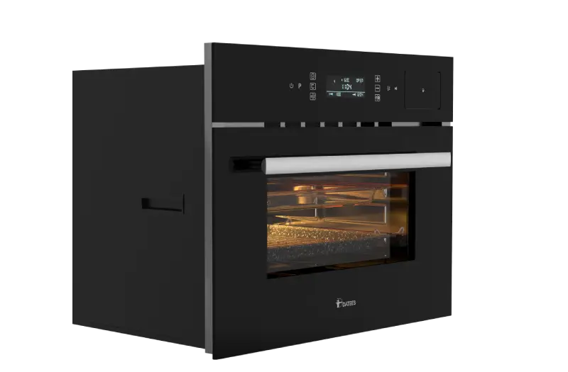 - مجهز به سیستم بخار، سینی تفلون و سینی پیرکس به همراه شلف روغن گیر
